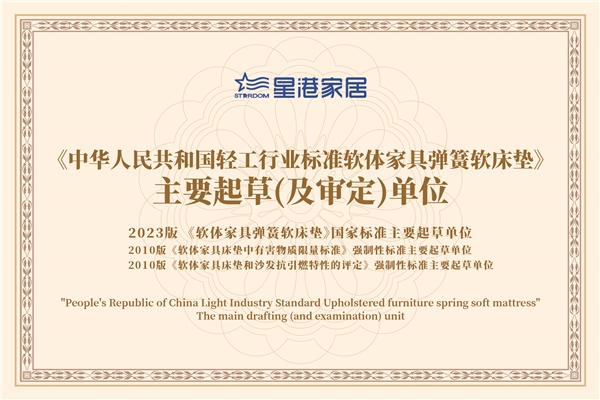 事实上,这已不是星港第一次参与行业标准建设。作为全国家具标准化技术委员会委员单位,星港已先后牵头或参与弹簧软床垫、智能家居等多项国家与行业标准的起草修订工作。在环保方面,星港成为湖南省首家获得《家具中有害物质限量》认证的企业,其产品有害物质释放量远严于国标要求,甲醛、苯系物等检测值均低于0.01mg/m,真正实现了“四个0添加”的承诺。