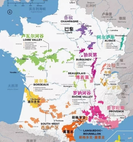 勃艮第专注于单一品种的风土表达。产区位于法国东部,大陆性气候显著,多样的土壤类型(如金丘的石灰质黏土)赋予葡萄独特个性。这里以黑皮诺和霞多丽为主,红酒口感细腻优雅,散发樱桃、草莓与泥土的复杂香气,罗曼尼康帝、勒桦等酒庄的酒款更是 “一瓶难求”,堪称红酒界的 “艺术品”。