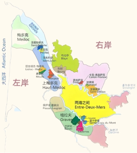 作为全球最知名的红酒产区,波尔多位于法国西南部,坐拥加龙河与多尔多涅河交汇的冲积平原,温和的海洋性气候让葡萄成熟度恰到好处。这里以赤霞珠和梅洛混酿闻名,左岸(如梅多克)的红酒单宁强劲、结构宏大,带有黑醋栗、雪松香气;右岸(如圣埃美隆)则更显柔顺,充满红色水果与紫罗兰风味。拉菲、拉图、玛歌等顶级名庄皆诞生于此,是品质与收藏价值的代名词。